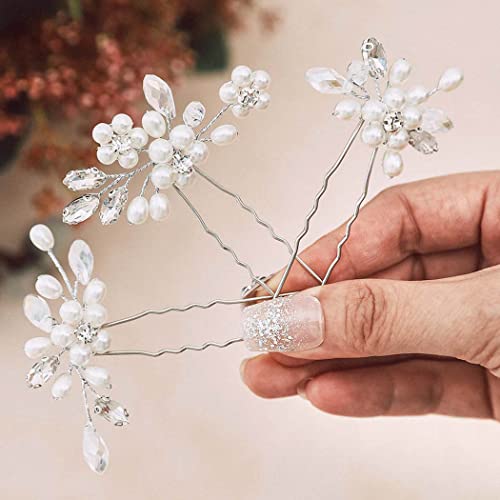 Runmi Fermagli per capelli da sposa con perle argentate per capelli, accessori per capelli da sposa per donne e ragazze (3 pezzi)