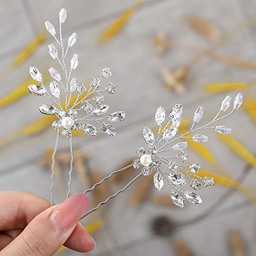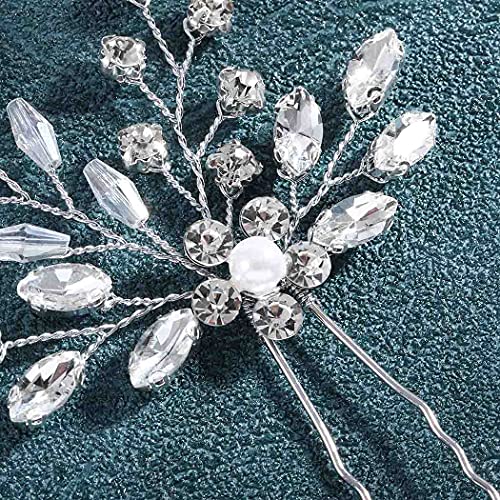 Runmi, forcine per capelli da sposa, accessori per capelli da sposa, in argento, con cristalli, per donne e ragazze (2 pezzi)