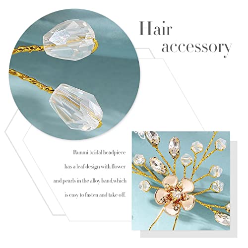 La forcina da sposa Runmi ha un design a foglia con fiori e perle nella fascia in lega, che è facile da fissare e togliere.
