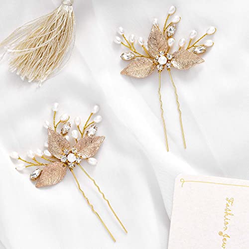 Runmi 2 forcine per capelli da sposa fiore oro pezzo per capelli perle accessori per capelli da sposa per donne e ragazze