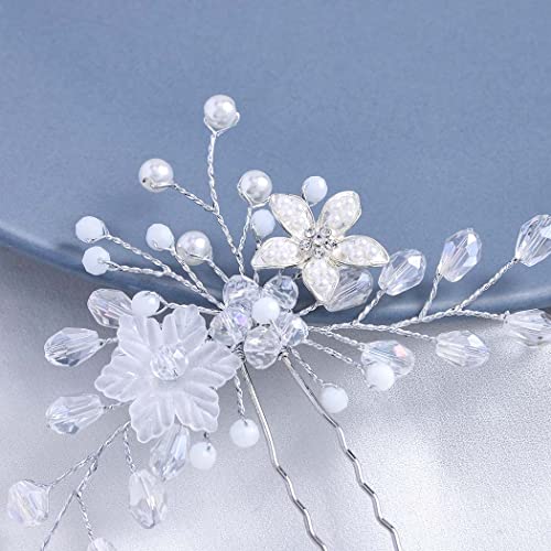 Runmi Forcine per capelli da sposa, con perline, colore: argento