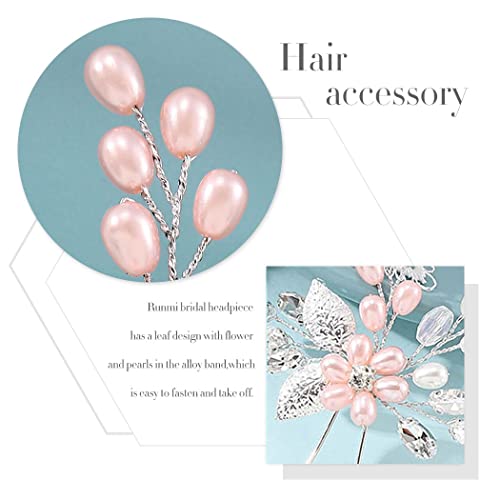 Il copricapo da sposa ha un design a foglia d'argento con fiori e perle nella fascia in lega, che è facile da fissare e togliere.