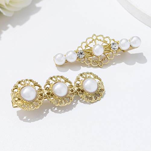 Runmi - Mollette per capelli con perle e cristalli, accessori per capelli in metallo dorato (confezione da 2)