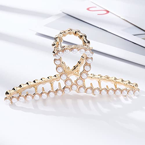 Runmi - Mollette per capelli con perle, in metallo, color oro, per donne e ragazze