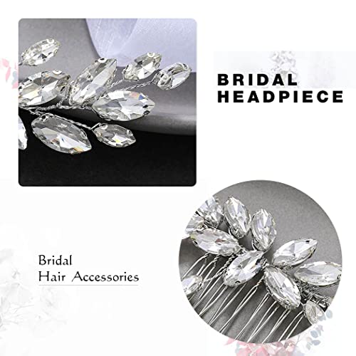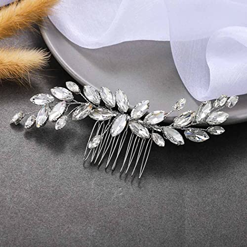 Runmi Pettine per capelli da sposa, in argento, con cristalli, accessorio per capelli da sposa per donne e ragazze