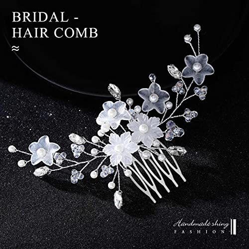Runmi Pettine per capelli da sposa, in argento, con fiore e cristalli, per matrimonio, per donne e ragazze