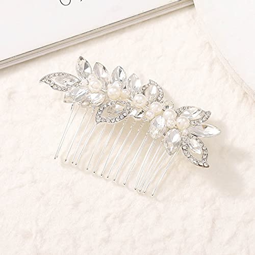 Runmi Pettine per capelli da sposa con foglie, in argento con cristalli, accessori per capelli da sposa, per donne e ragazze