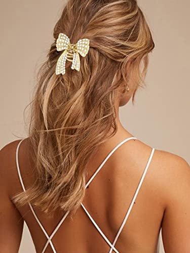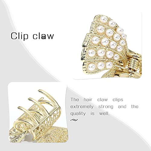 Runmi, 2 pinze per capelli dorate con perle, a forma di farfalla, in metallo, per donne e ragazze