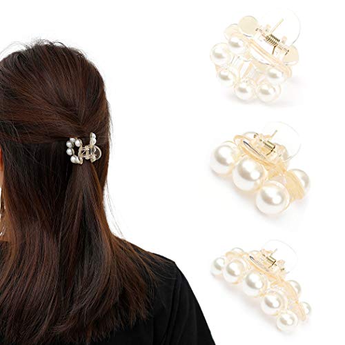 Runmi - Pinze per capelli con perle, mini fermagli per capelli antiscivolo, 3 pezzi, accessori per lo styling dei capelli per donne e ragazze