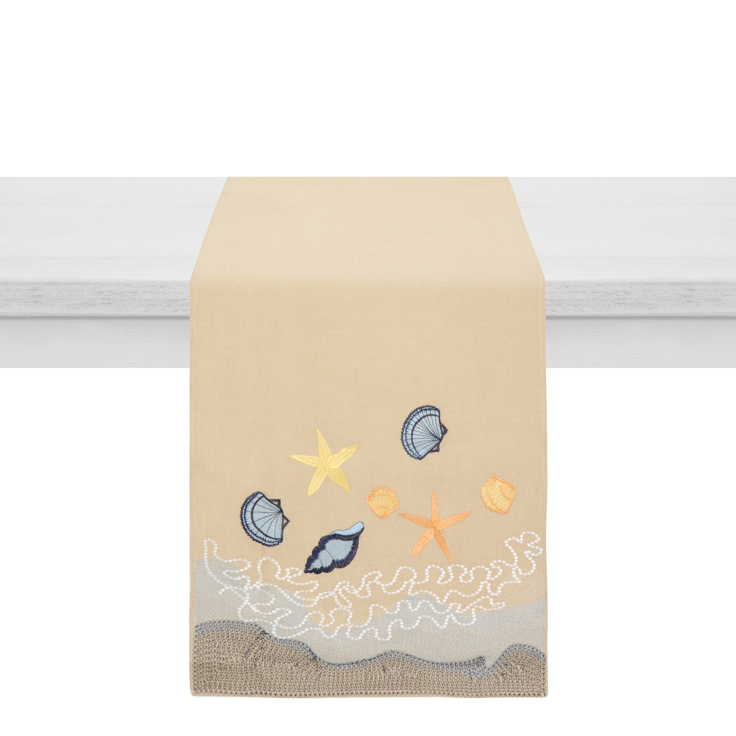 Per apparecchiare una tavola per due persone in modo originale, puoi utilizzare questo vivace runner in tessuto. Posizionandolo lungo il lato corto del tavolo, sarà la base perfetta per appoggiare piatti, posate e bicchieri preservando la superficie da eventuali schizzi di cibo e bevande. Con il suo decoro di conchiglie porterà una ventata di mare anche sulla mise en place della tua casa di città. Il runner è lavabile in lavatrice a 30° con centrifuga normale. Non asciugare in tamburo e stirare a una temperatura massima di 110°. Misura: 50x150 cm.