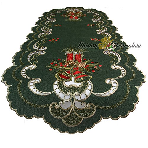 Runner centrotavola, verde Scuro, Tovaglia rossa, con candele ricamate, motivo: Natale, diverse Misure, Poliestere, verde, 45 cm x 110 cm