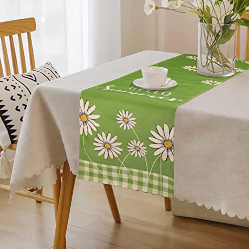 Runner Copritavolo Crisantemo Bianco Runner Tavola 40 x 140 cm Runner Tavolo Moderno Fiori Lino Adatto Per Tavolo da Pranzo Credenza Cassettiera Tavolino da Caffè, Mobile da Soggiorno Porta