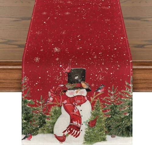 Runner Natalizio Rosso - Dimensioni 40x140 cm - Il Runner da tavola per il Natale - Colora di Rosso il tuo tavolo insieme agli altri addobbi natalizi per la Casa (Pupazzo di neve)