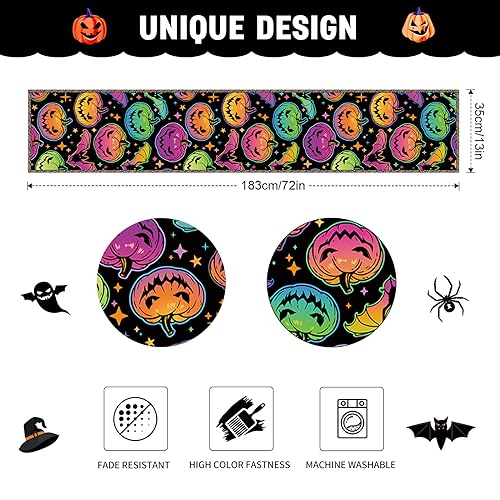 Runner da tavola per Halloween, extra lungo, zucca, casa infestata, Happy Halloween, lavabile, runner da tavola per Halloween, decorazione da tavolo, per casa, Halloween, feste, sala da pranzo,