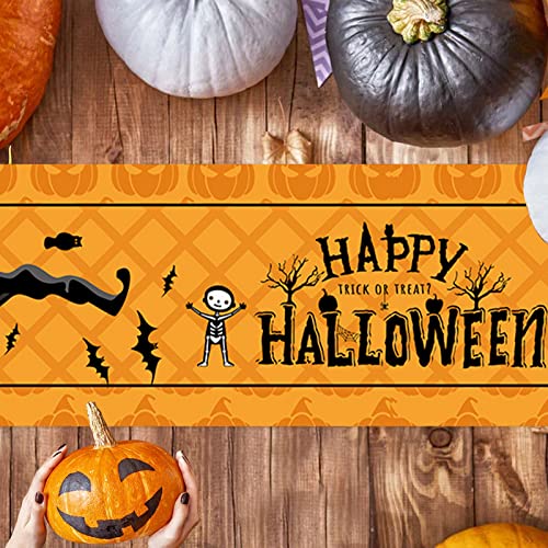 Runner da tavola per Halloween, con motivo a scheletro di zucca spaventosa, lunghezza 30,7 x 18,7 cm, riutilizzabile, per tavolo da pranzo per feste di Halloween