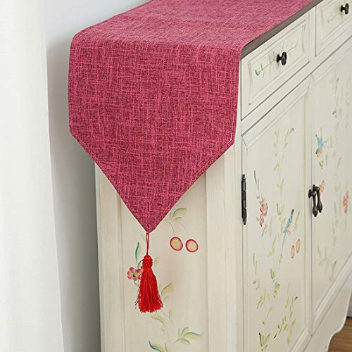 Runner da Tavolo Panno E Nappa Art Deco per Banchetto Stile Semplice Tinta Unita Tavolo da Pranzo Corridore Selezione Regalo (30 * 120CM,Rosa Rossa)