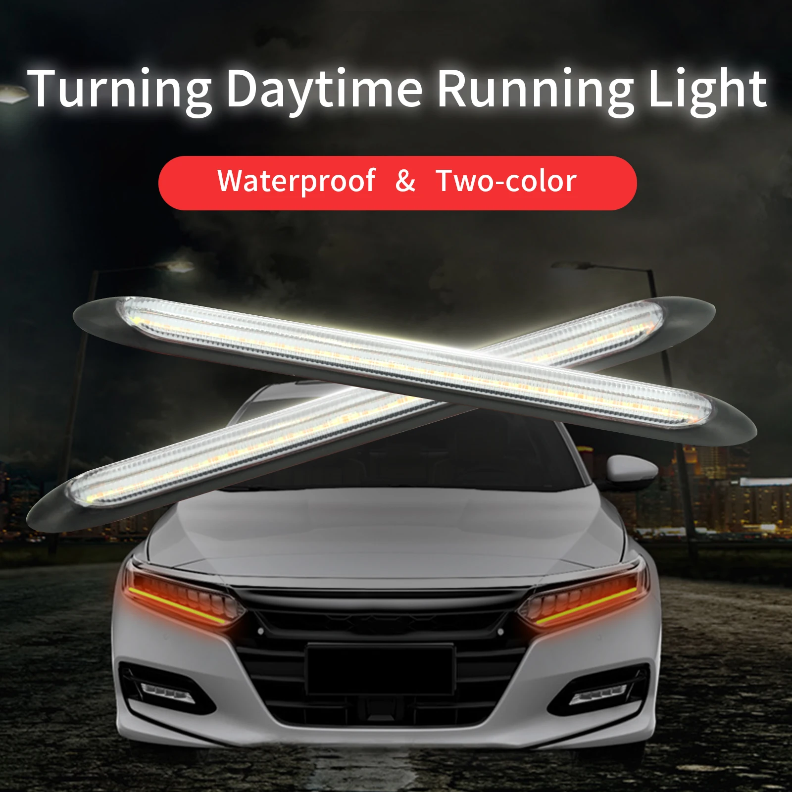 2Pcs Led Car DRL Running Day Lights Waterproof Universal DC 12V Auto Headlight Sequential Turn Signal Yellow Flow Streamer Strip