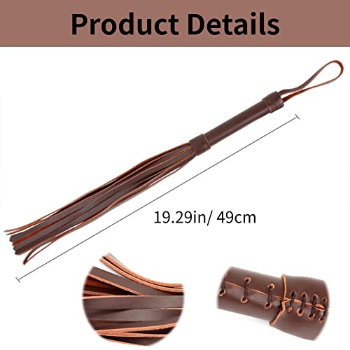 Runrayay Frustino Fatto a Mano con Frusta Marrone in Ecopelle, Accessorio per Costume da Frusta da 19 Pollici, frustini per Equitazione, frustini per Accessori per Costumi Cosplay