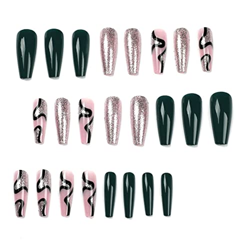 ☛[Unghie finte con glitter Wave]: le ultime unghie acriliche lunghe a pressione sono decorate con un design glitterato per unghie alla moda. I colori lucidi sono adatti per abbinare gli outfit quotidiani e mostrare sicurezza.