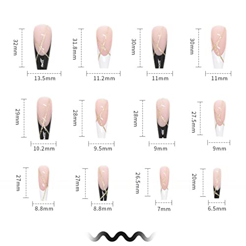 ☛[Unghie finte lunghe in bianco e nero]: le ultime unghie lunghe acriliche a pressione sono decorate con un design alla moda in lamina d'oro. I colori lucidi sono adatti per abbinare gli outfit quotidiani e mostrare sicurezza.