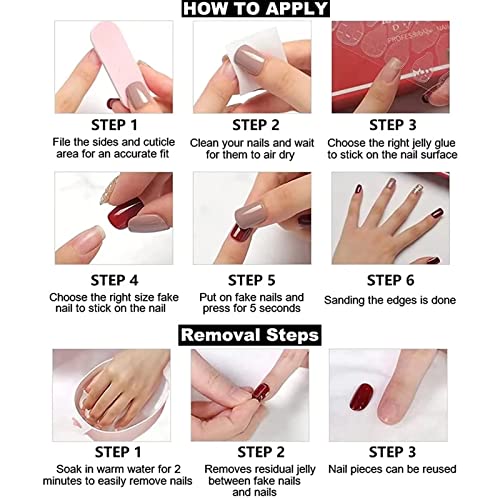 ☛[Facile da applicare]: invece di spendere molto tempo e denaro al salone di bellezza, puoi cambiare lo stile delle tue unghie in 15 minuto sempre e ovunque. (Le unghie finte rimarranno più a lungo se pulisci le unghie prima dell'uso, ed evitare l'acqua entro la prima ora dall'uso)