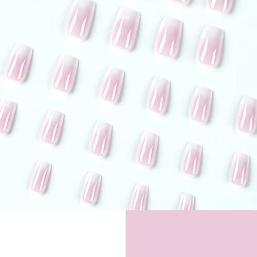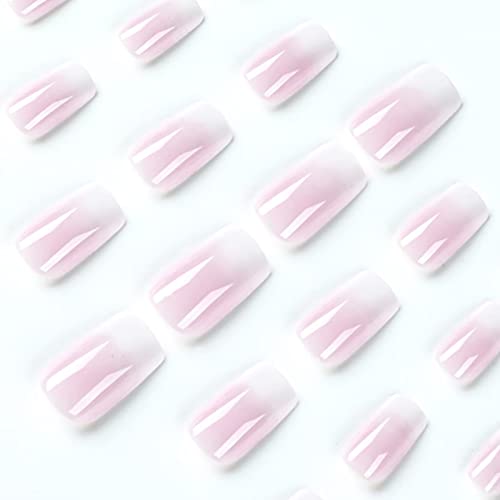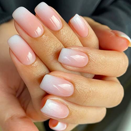 RUNRAYAY Unghie finte lucide quadrate corte a pressione, unghie bianche sfumate, unghie acriliche perlate, unghie finte estive, unghie statiche squisite per donne 24 pz.