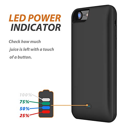 RUNSY iPhone 7 / 6S / 6 Custodia Batteria, 5200mAh Ricaricabile Batteria con Custodia per iPhone 7 / 6S / 6 (4.7 inch), Backup Battery Charger case (Nero)
