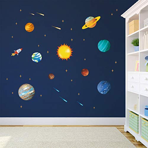 Runtoo Adesivi Murali Pianeti Nello Spazio Adesivi da Parete Sistema Solare Stelle Decorazioni Murale Ragazzi Bambini Camera da Letto Camerette Neonato