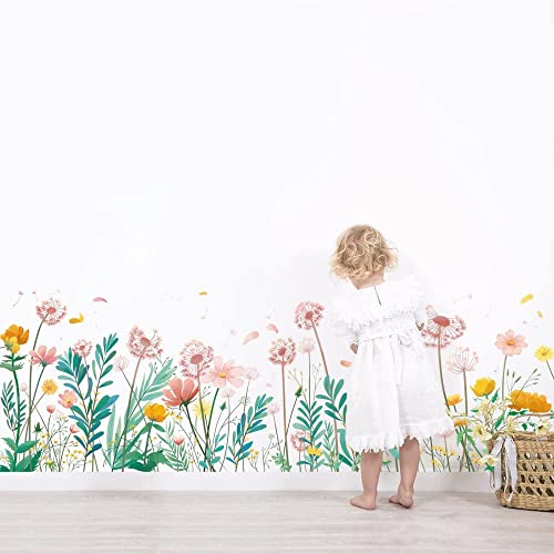 Runtoo Decalcomanie artistiche da parete con dente di leone in erba battiscopa linea adesivi angolari per ragazze camera da letto soggiorno bambini decorazione della parete