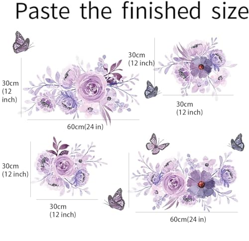 Runtoo Decalcomanie da parete con fiori viola peonia floreale farfalla adesivi da parete per ragazze camera da letto bagno cameretta cameretta, DECAL171