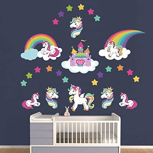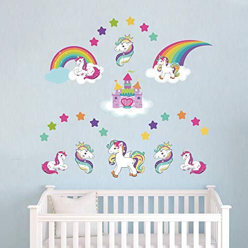 Runtoo Pegatinas de Pared Unicornio Stickers Adhesivos Vinilo Arcoiris Estrellas Princesa Decorativas Infantiles Habitacion Bebe Niñas