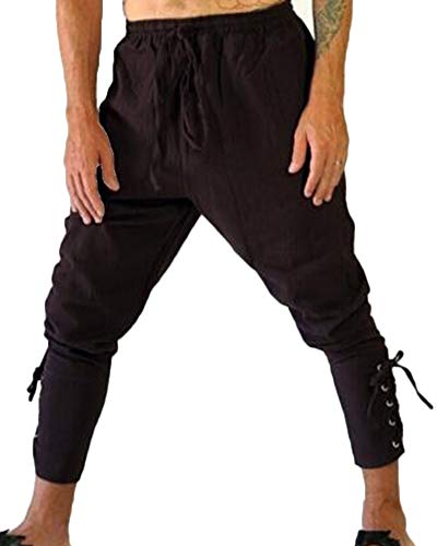 Runyue Pantaloni Medievali da Uomo con Lacci ai Polpacci Marrone 3XL