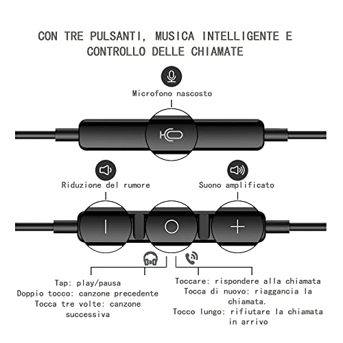 Runzexin cuffie in-ear, cuffie stereo con funzione microfono e controller per Galaxy, Huawei, MP3 e altri dispositivi audio, ecc. (3.5MM, Nero)