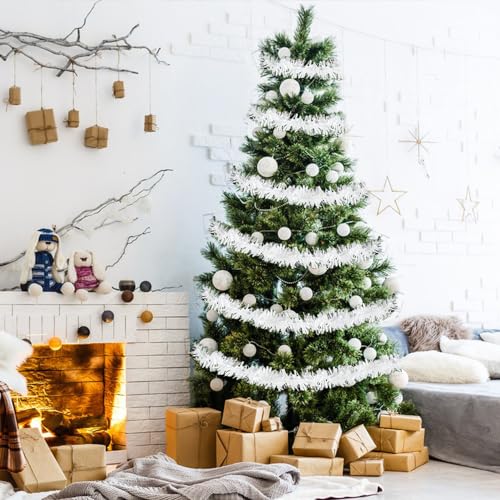 Ruolin 6PCS Ghirlanda Albero di Natale, Ghirlanda di Natale Tinsel, 2M Festoni Natalizi, Ghirlanda Natalizia per Albero Natalizie Decorazioni Casa Interno Esterni, Bianco