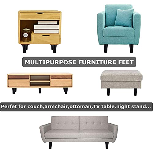 Ruolin 4 Pezzi Gambe per Mobili Legno Nero, Piedini per Tavolino Divano in Legno Massello con Viti e Piastra di Montaggio Adatto per Divani, Mobili, Armadi