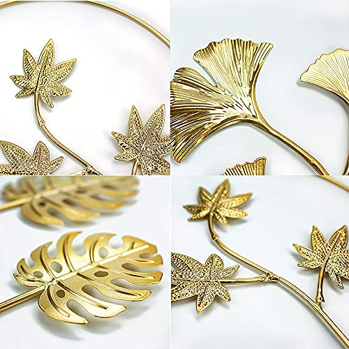 Ruolin 3PCS Sculture da Parete in Ferro, Foglie di Ginkgo Dorato Foglia di Palma Foglie di Monstera Decorazione da Appendere Foglia di Acero Ginkgo Appeso a Parete per Home Office Soggiorno dellhotel