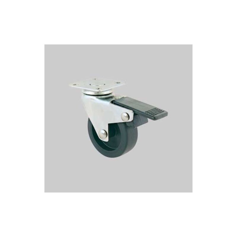 Supporto a piastra girevole in acciaio stampato rotante su doppia corona di sfere con freno. Rivestimento in gomma sintetica. Ruota arredamento art. 220bis avo c/freno 40 mm - portata 15 kg ALDO VALSECCHI Ruote avo