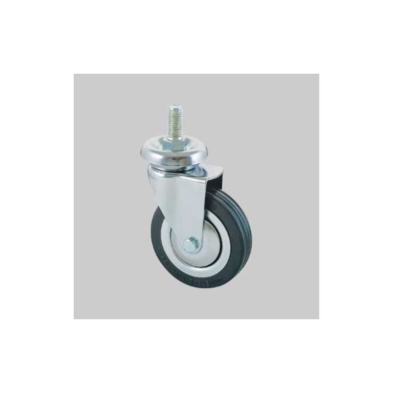Supporto a perno filettato girevole in acciaio rotante su corona di sfere. Rivestimento in gomma con parafili e flange in acciaio stampato, rotante su cuscinetti a sfera. Ruota arredamento art. 155b avo 80x20 mm - fil. m12 - portata 70 kg ALDO VALSECCHI Ruote avo