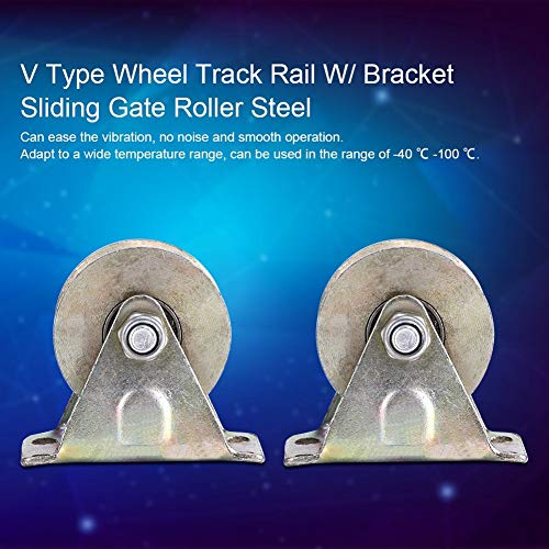 KSTE Ruota Per Cancello Scorrevole, Roller Roller - Ruota for binario di tipo V a 2 pezzi, acciaio a rulli for cancello scorrevole con staffa a W, binario for pista di scorrimento