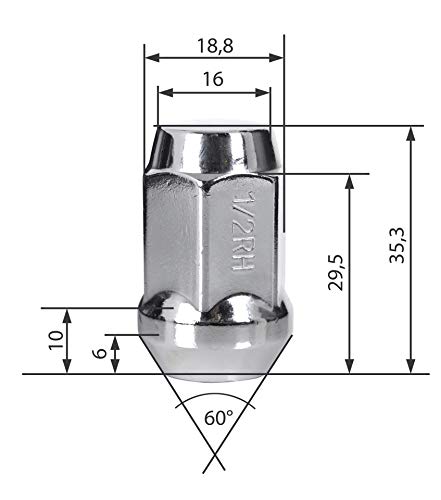 20 dadi per ruota cromati 1/2 UNF RH dadi con cono a 60° - Larghezza chiave: 19 mm ~
