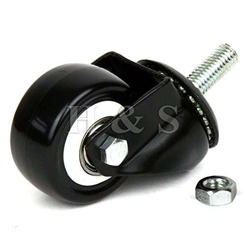 H&S Ruota Girevole con Perno Filettato M10 per Carrello - Ruote per Mobili Pivotanti in Set da 4 da 50mm - Rotelle Piene con Freni Girevoli - Rotelle per Spostare Mobili