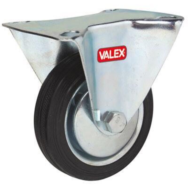 RUOTA IN GOMMA mm.125 CON PIASTRA FISSA port.100Kg. RUOTA IN GOMMA CON SUPPORTO A PIASTRA FISSA Codice: 1500202 Fornito in BUSTA PLASTICA Mozzo con cuscinetto a rulli. dimens.ruota Øxl mm 125x34 portata kg 100 altezza utile mm 147 piastra lu x la mm 104x83 Ø fori piastra mm 9 fori interasse mm 72/60...