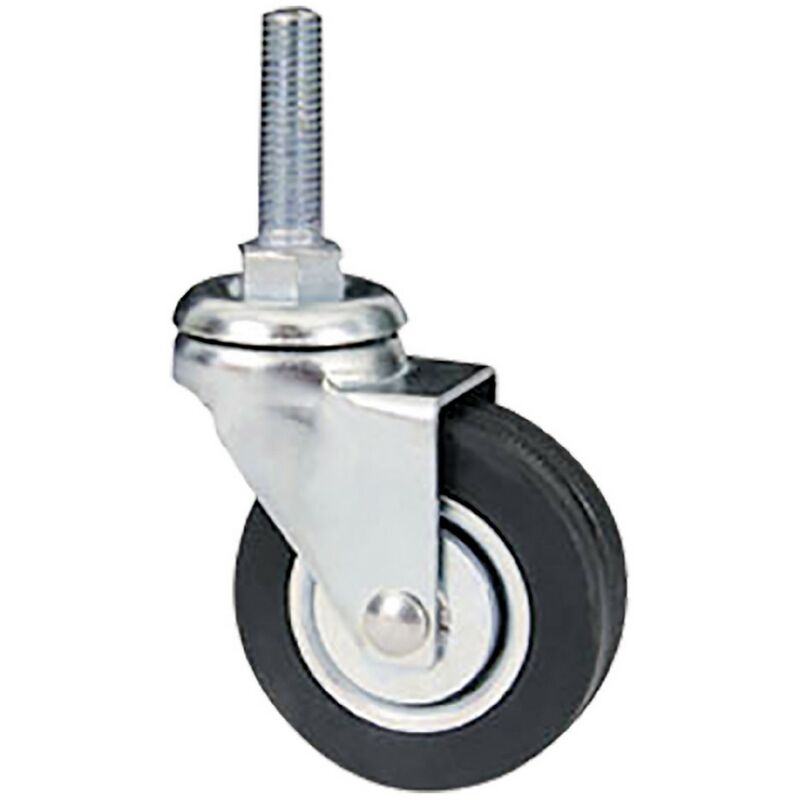IN GOMMA NERA, CON SUPPORTO ROTANTE IN ACCIAIO STAMPATO SU DOPPIA CORONA DI SFERE A PERNO FILETTATO. IMPIEGO CONSIGLIATO PER MOBILI UFFICIO, MOBILI METALLICI, ESPOSITORI.ø 50 - PERNO MM 8 X 30 - NERA