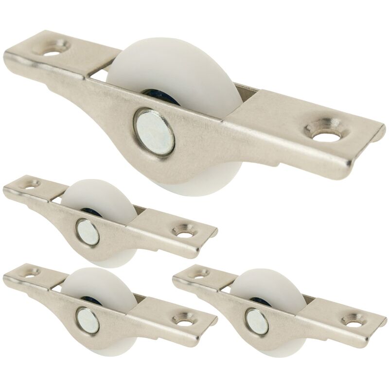 Ruote leggere e resistenti per mobili, carrelli, sedie, tavoli senza possibilità di rotazione, ha solo percorsi rettilinei br> Caratteristiche del prodotto DESIGN: Kit di 4 ruote in nylon con fissaggio in metallo con la ruota, che si trova sul mobile o sulla porta IDEALE: La ruota è ideale per montarla su mobili, carrelli, tavoli, macchine, carriole e poterla così trasportare più comodamente FUNZIONALITÀ: La ruota è progettata per andare in linea retta, quindi non ha un giro MISURE: Le dimensioni che deve presentare la ruota sono di 30 mm di diametro, con una larghezza rispetto alla struttura di 13 mm e la ruota di 8 mm;