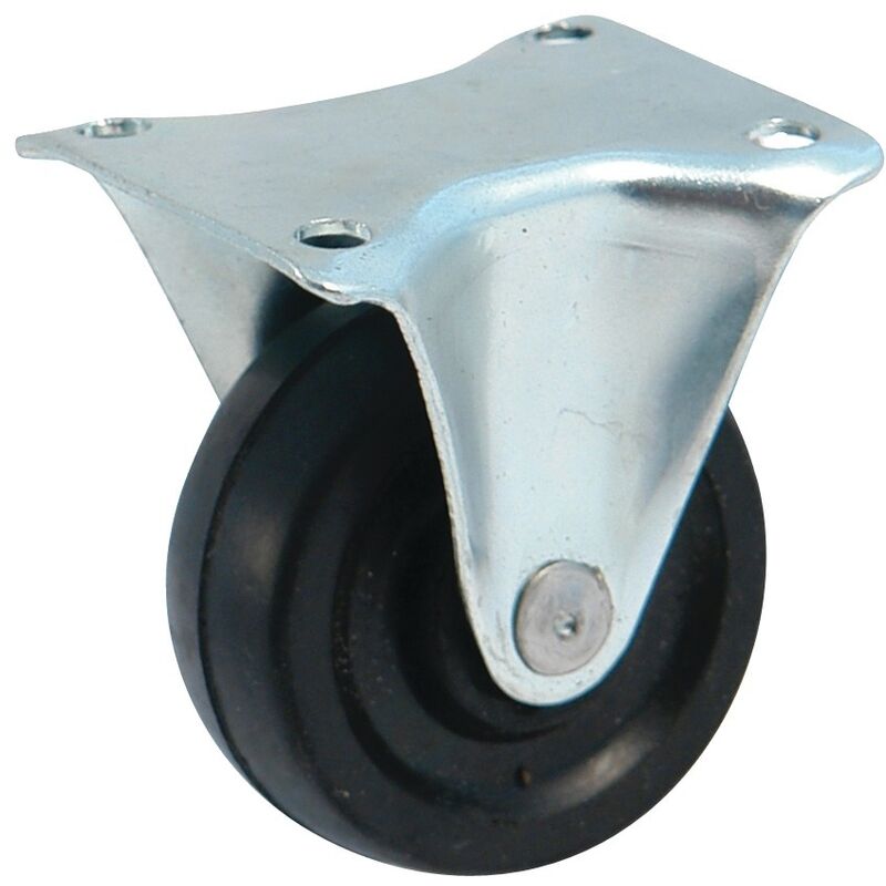 Ruota in platino rettangolare fissa da 40 mm Ruota in acciaio stampato zincato fissata con piastra rettangolare. Ruota in gomma nera.