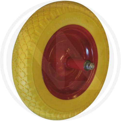 Ruota piena gialla per carriola maurer asse 150 dotata di cuscinetti