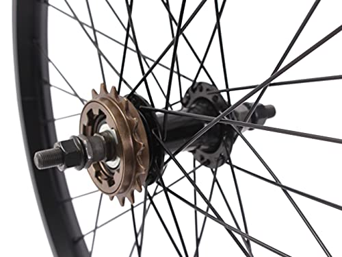 KHE BMX ruota posteriore 20 pollici 10 mm asse 7500 alluminio cerchio 36 fori nero pignone a 16 denti