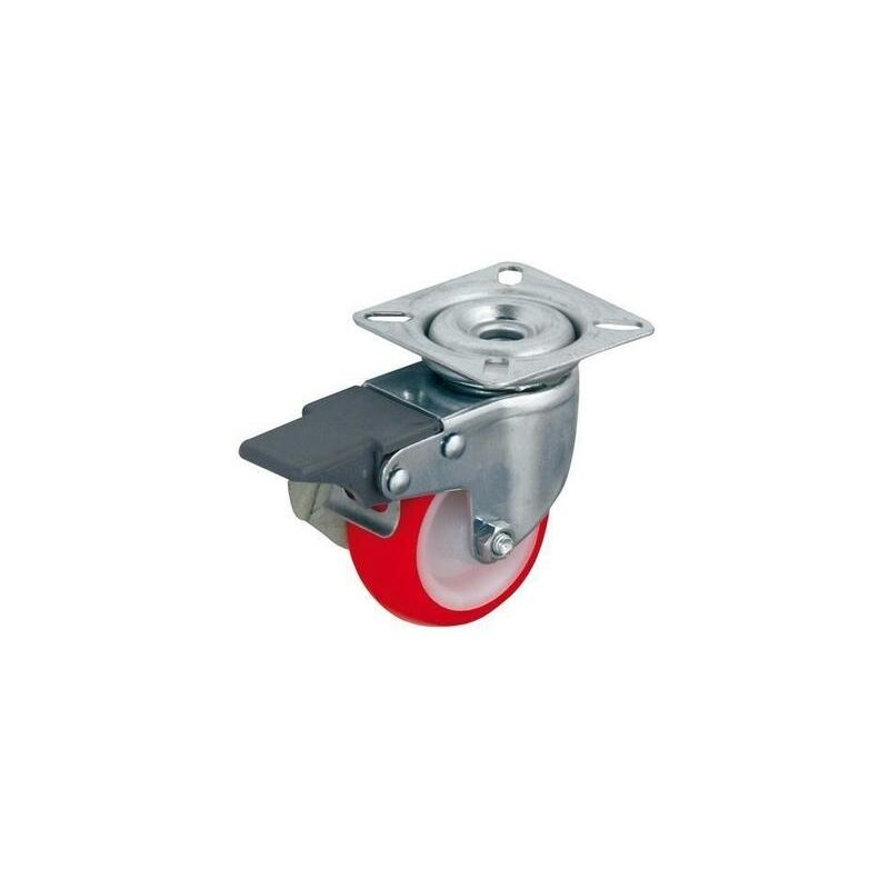 RUOTA PVC ROSSA mm.40 PIASTRA GIREVOLE Ruota in PVC rosso da 40 mm con piastra girevole, ideale per manovrare agevolmente e agevolmente mobili e attrezzature.