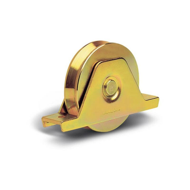Ruota per cancello scorrevole pesante in C45 a doppio cuscinetto e supporto di montaggio - Gola V Rolling Center Misure come da immagini.