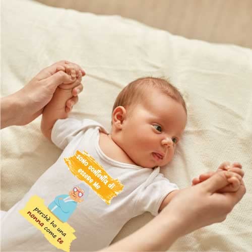 Body neonato a maniche corte con stampa come in foto in tessuto 100% cotone interlock ring spun per un tessuto piu' fine liscio e omogeneo